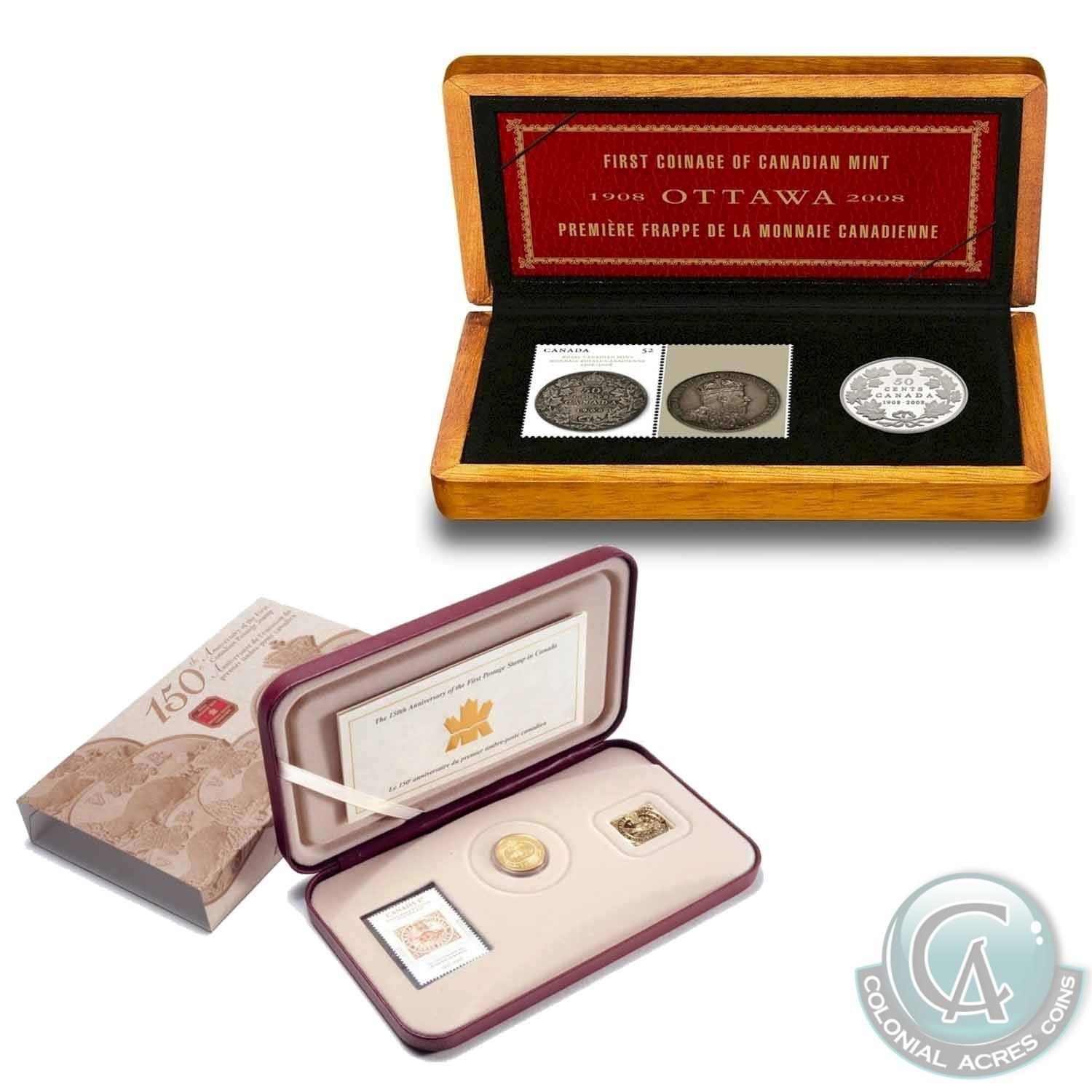 2001 Canada 3Cent First Postage Stamp Anniversary & 2008 Royal Canadian Mint 100th Anniversary Coin