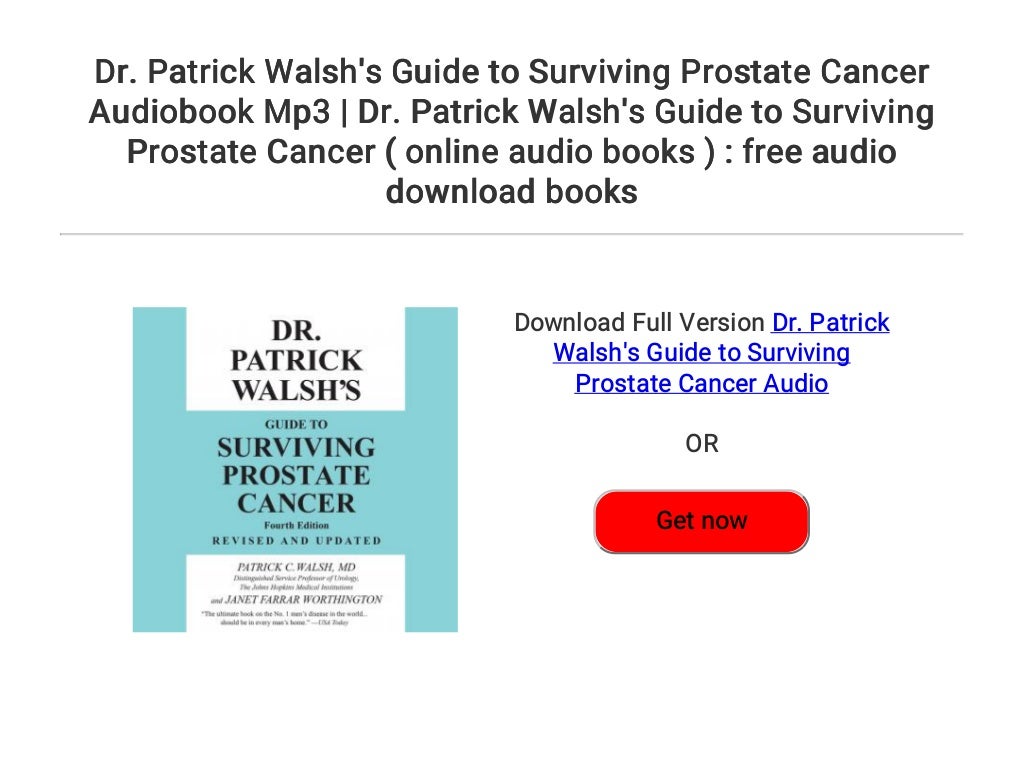 What listeners say about Dr. Patrick Walsh's Guide to Surviving Prostate Cancer Average customer ratings. Overall. 5 out of 5 stars 4.8 out of 5.0 5 Stars 59 4 Stars 5 3 Stars 0 2 Stars 1 1 Stars 1 Performance. 5 out of 5 stars 4.9 out of 5.0 5 Stars 50.