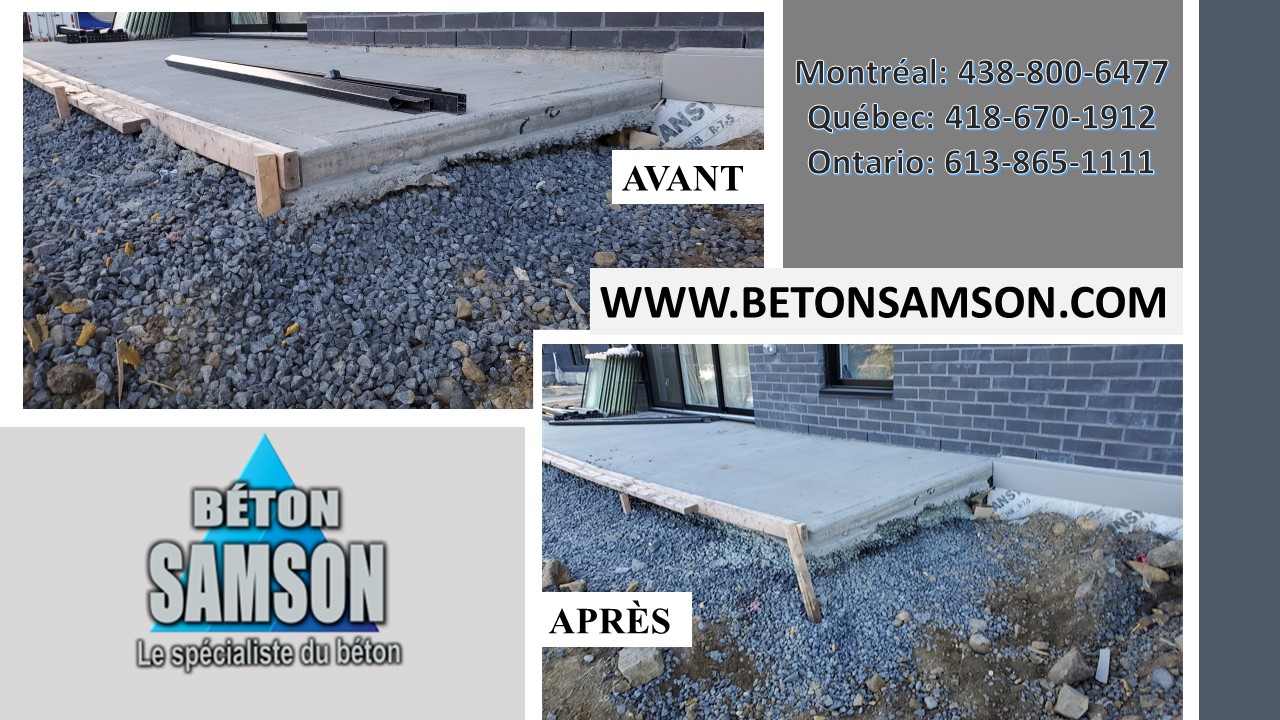Levage de béton et redressement de dalle de béton, remplissage de vide sous le béton et stabilisation de dalle de béton. Rapide et efficace, en moins de 1 jour. Aller au contenu. Levage de béton. 438-800-6210.. Nous soulevons les dalles de béton par injection de polyuréthane haute densité. Notre produit peut aussi remplir les vides.