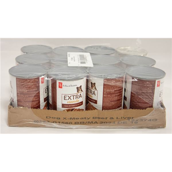 12 CANS PC EXTRA MEATY DOG FOOD BEEF/LIVER DINNER