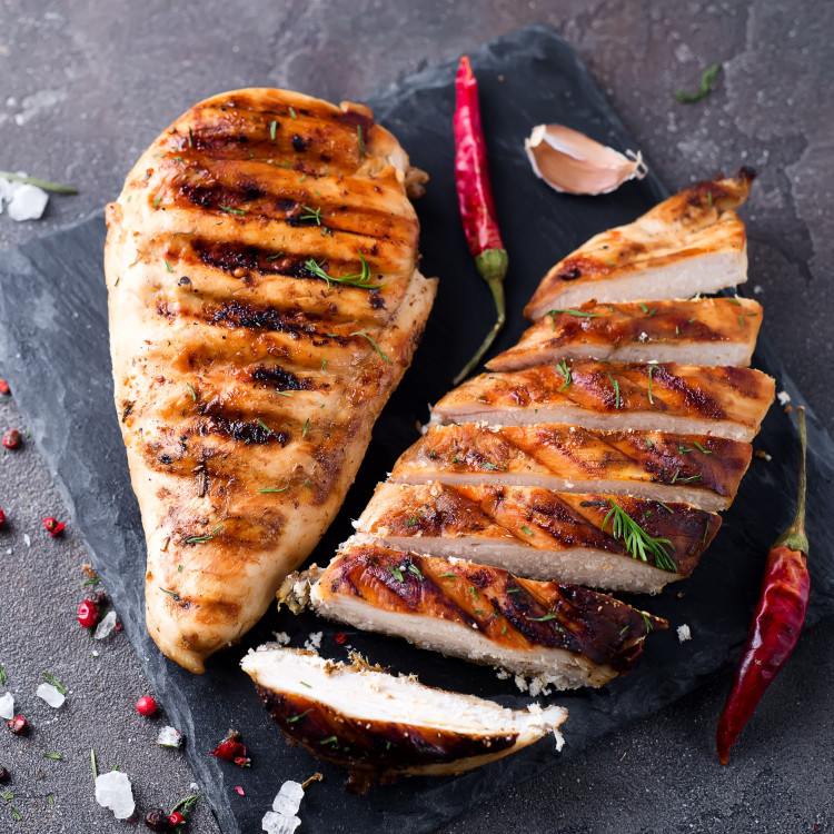 Étape 1. Lacérer les poitrines de poulet. Étape 2. Faire fondre le beurre jusqu'à ce qu'il commence à brunir. Étape 3. Faire dorer les poitrines de poulet de chaque côté. Saler et poivrer au goût. Étape 4. Ajouter le bouillon de poulet et les épices à volaille. Laisser mijoter environ 20 minutes. Étape 5.