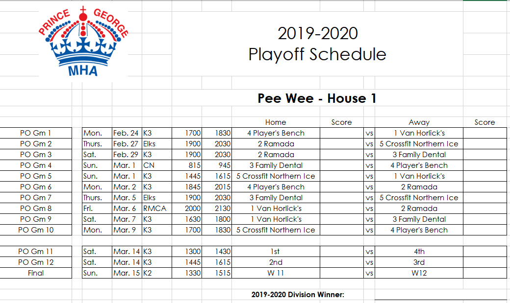 Schedule | Soo Peewee Hockey League SPWHL 2022-2023 » Northern Ontario Hockey Association (NOHA) Division: All Divisions. Game Type: Date Range: